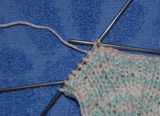 Our legwarmers will be decorated with a pattern made as follows: transfer 26 loops on the middle needle and divide the other loops between two other needles (13 loops for each).