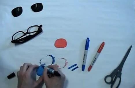 Put the lenses on a film and circle it with a marker. After that, cut the new “lenses” out. You can use a nametag, a CD box or any other transparent plastic instead of the film.