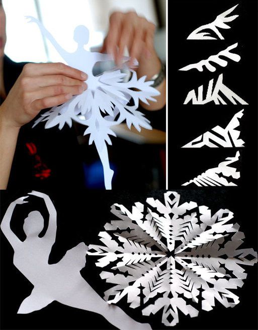 Such snowflake could become a beautiful and unusual short skirt for your paper ballerina. Having made several different snowflakes, you may dress each ballerina in her personal dress.