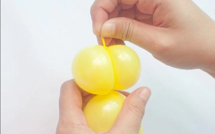 6. Take the first bubble and insert the inside of the head, holding the second from the outside of the head. After you wrap it between the bubbles 8 and 9, the mouth and nose will appear.