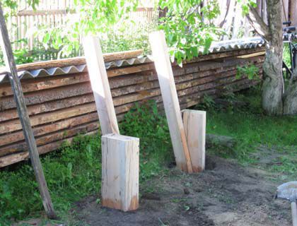 1. Dig 2 holes 40-50 cm. deep. If the ground is moving you can put in the holes some gravel or crushed stones.