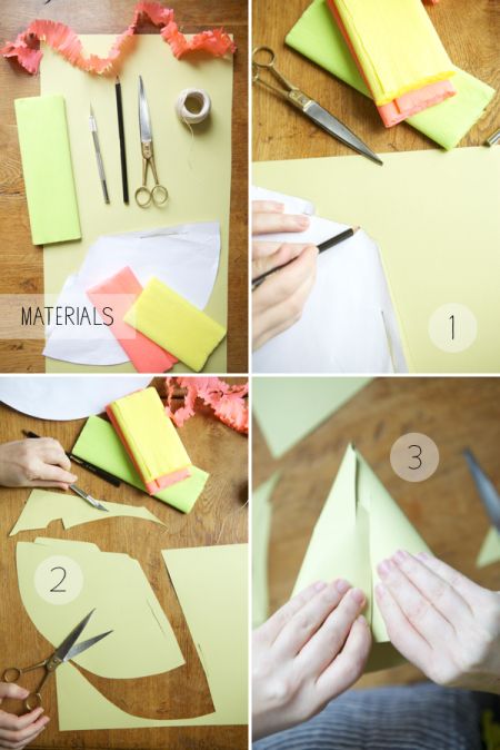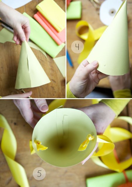Bright and multi-colored paper cones are popular accessories, pertinent both at a noisy crowded party, and at a small home festival among family members. However, we often find it difficult to get an article of suitable color or size and probably have not enough time to look for it. So, provide yourself with several sheets of thick paper and the scheme, and make exactly such hats what you would like to see on the holiday.