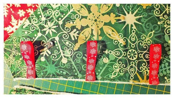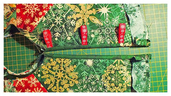 Put the “sandwich” layers together the following way: inner side fabric – filler – top. Fix all layers with a pin or baste them together.