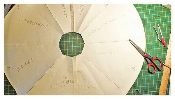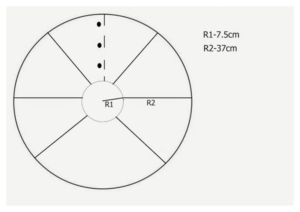 First, decide on the size of the skirt: draw a circle on a sheet of paper and divide it into sectors, and do not forget to mark the spot where the lock will be.