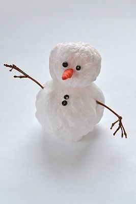 Now we fix a nose to the snowman and make eyes and buttons with the help of black beads. As the hands we insert thin twigs (hands can be made of cotton - the same balls).