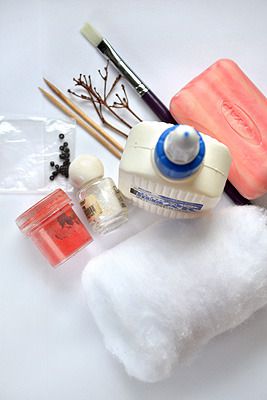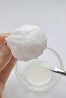 We moisten our hands, lather them with soap and make out of cotton two balls of different diameter. After forming the balls, we give them a good dry.