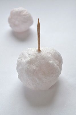 We wet the toothpick with a glue and connect two previously prepared balls.
