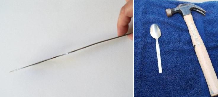 Let’s start with aligning the flatware. Depending on what you have chosen, a spoon or a fork, you’ll need to wrap it in a towel and peen it with a hammer. You need to hit it carefully bit the hits should be rather strong. This way you’ll align all the curves on the surface of the flatware. Your spoon or fork should become completely flat. In case you have chosen a fork, you may use round pliers and bind the teeth in spirals. This is an additional decoration.