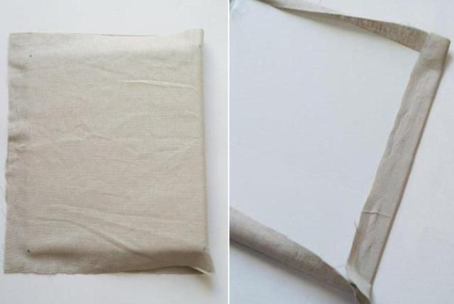 Cut 2 rectangles out of the thick paper or cardboard. The main thing is for the rectangles to be a little bit shorter than the walls of the folder. They shouldn’t get on to the spine. Otherwise, the folder will be hard to close or, it may be even worse, the cardboard may tear or come unstuck. The size of the cut out rectangles should be bigger than the size of the folded cloth.