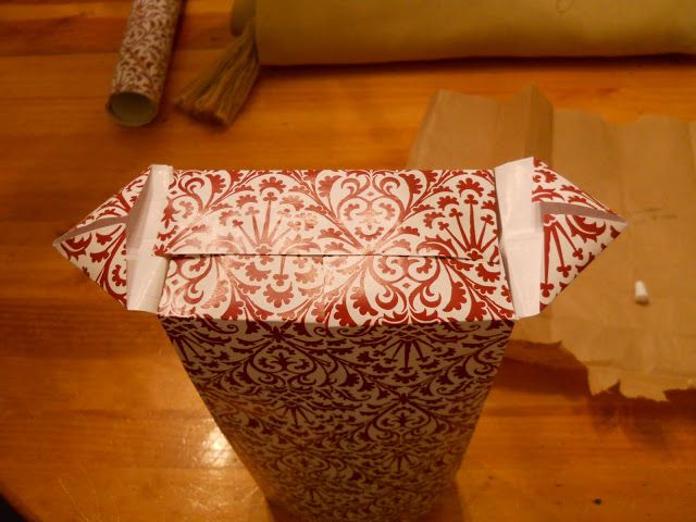Step 8. Now glue the bottom. As you can see, you need to fold the small details at the sides to form triangles. Start with the longer details on the bottom and go on with the triangles. Apply a thick layer of glue to make your gift bag more durable. It should be able to bear the gift.
