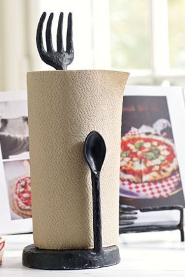 Would you like to give a unique paper tower holder as a gift to your loved ones? It can be not only a practical tool, but also a nice accessory to decorate your kitchen and amuse your guests. You can use an old chopping board or wooden cutlery for this. You will benefit from your paper towels finding a cosy home to live in, as well as your old cutlery getting a new life. Let's waste no more time and get down to work!