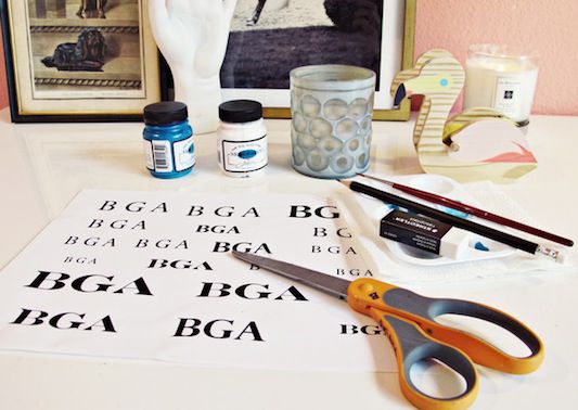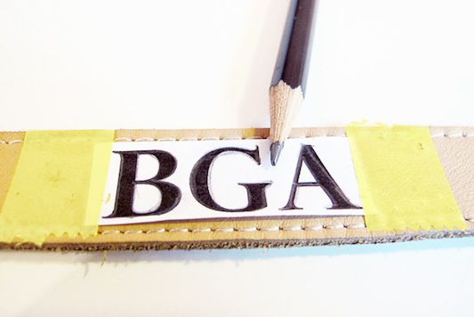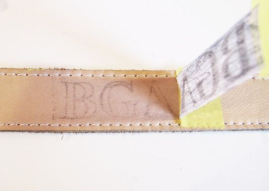 3. Turn over the paper. The monogram is now up. Put it where it should be and fix it with the help of self-adhesive paper tape. Then, press through the outline of the monogram with the help of the pencil. This way the outline will be imprinted on the bag.