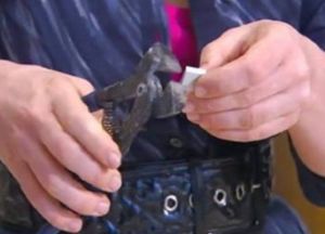 Then cut the material in pieces. Use cutting pliers or tile saw.