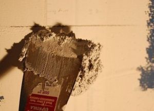 When the elements are ready, begin gluing them to the wall. It is best to use latex based glue. Mix the glue with cement and water, having read the instructions carefully. Apply the blend to the wall.