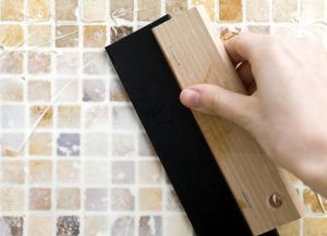 After you stick all the pieces to the wall in the right order, leave it to dry and proceed to the next step a day after. It is necessary to float the joints. Then remove the excessive float finish using a rubber putty knife and rub the surface with a cloth. Then leave the float finish to dry.