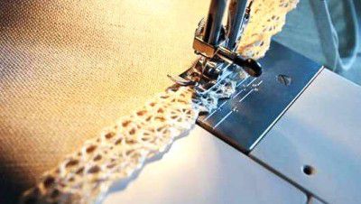 Take the lace, lay it over the front face of the tablecloth along the edge and sew on the machine.