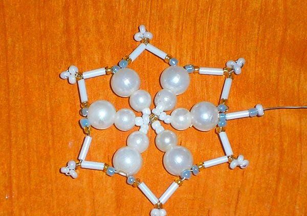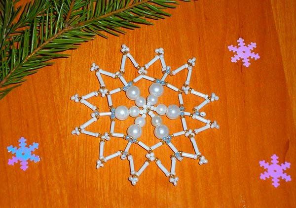 This snowflake made of beads can decorate both your Christmas tree and a Christmas garland over the archway that leads into your house.