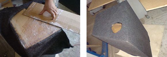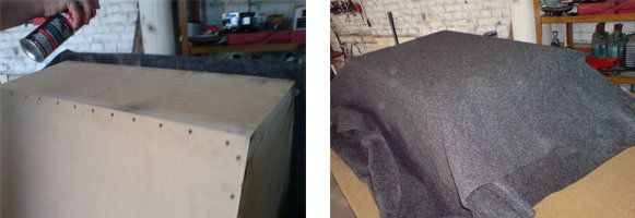 Before covering process, process the box by a glaze disc for smoothing of sticking up parts and irregularities. Moreover, use a vacuum cleaner inside and outside it. Cut off the carpet with reserve by the sides so that it could be folded. Gluing: