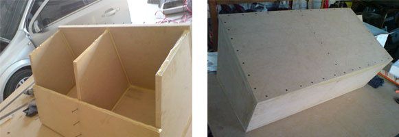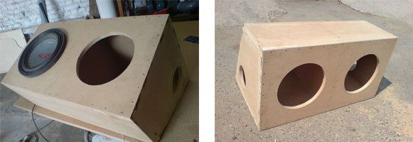 Line out a MDF sheet according to the required proportions and begin to saw it with the help of a circular saw or a fret-saw. Do not forget, that the box shown on the photo, is double. Thus, you get parts for making a subwoofer box.