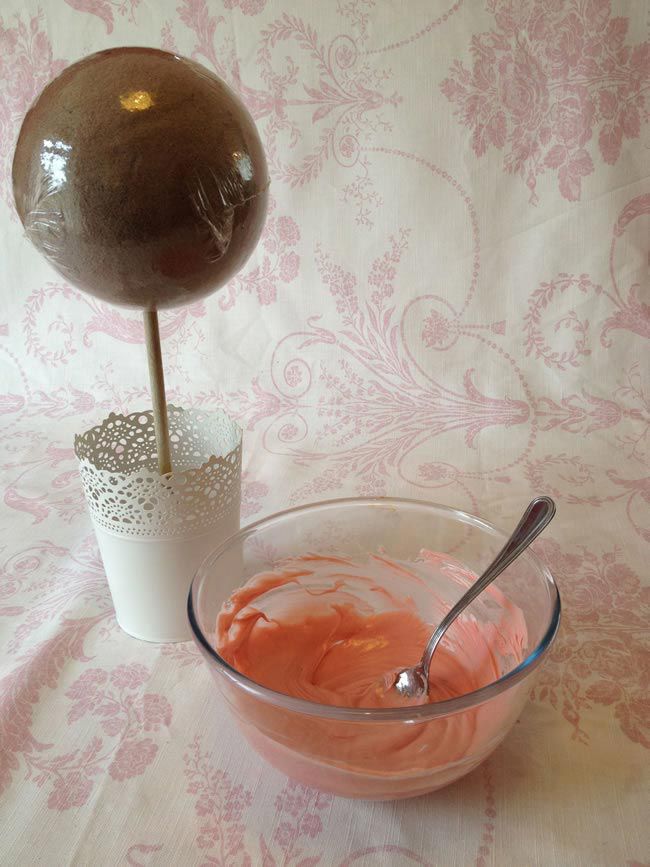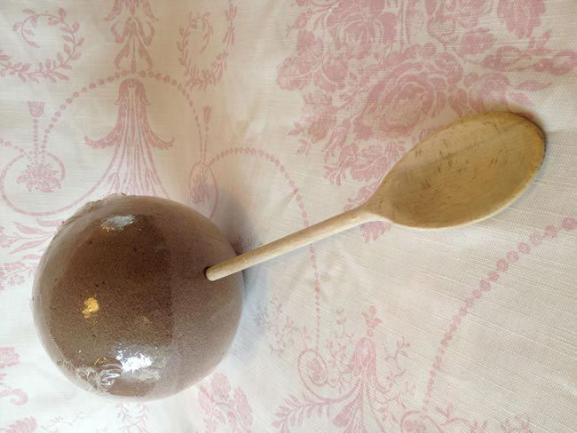 To start, insert carefully the thin end of the spoon into the ball. Then wrap it in a food film.