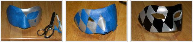 Think of how you want to decorate your Venetian mask. In this case, take black finishing tape and stick it along the contour. It will not only decorate your work, but also hide some imperfections if necessary. Attach sateen bands as laces and you are all set for a carnival!