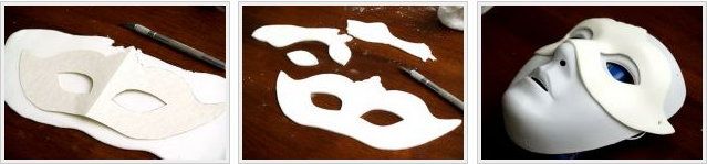 You can make Venetian carnival masks of plastics - a mass which solidifies after baking. Cut a template for the mask out of cardboard, roll out a layer of plastic about a few millimeters thick, put the template on and carve out the shape neatly with a knife. After that, give the mask a natural shape. You can use another mask or even your face for it, or take the prepared cardboard carcass. Similarly, make holes for the laces and put the mask in a stove.