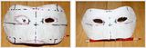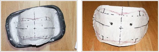To make the surface smooth, you can stick some bandage on it and then cover with caulking. Now paint the mask, covering it several times with white glossy paint and smooth out all irregularities.