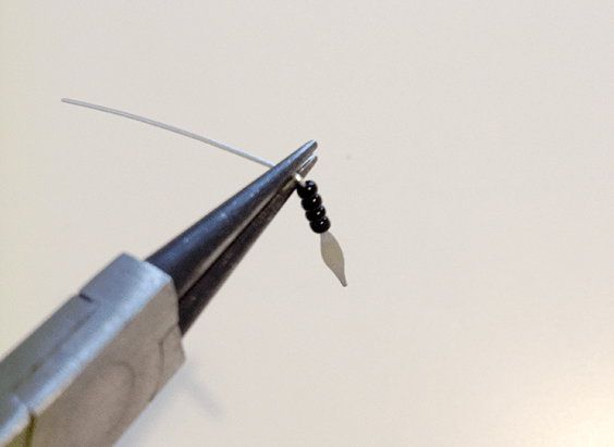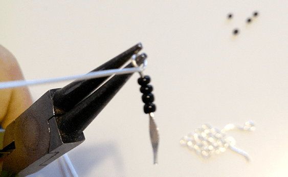 The second step. The parts of bijouterie pegs where there are no beads we twist in a loop with the help of pliers. The excess of it that’s left we cut off with nippers.