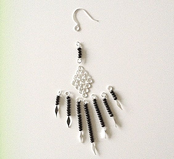 The fourth step. We put all the elements of a future earring in an order that is shown on the picture. Then, we start assembling the article.
