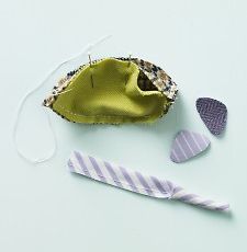 Step 4. Fold the details of mouse ears in half and sew them accurately to the mouse body manually with small stitches. The eyes and the nose of your mouse can be made by stitching seam with a black thick thread.