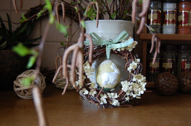 An Easter wreath can be hung on a door or wall in any room. This decoration is loved especially by children. You can make an Easter wreath using various materials.