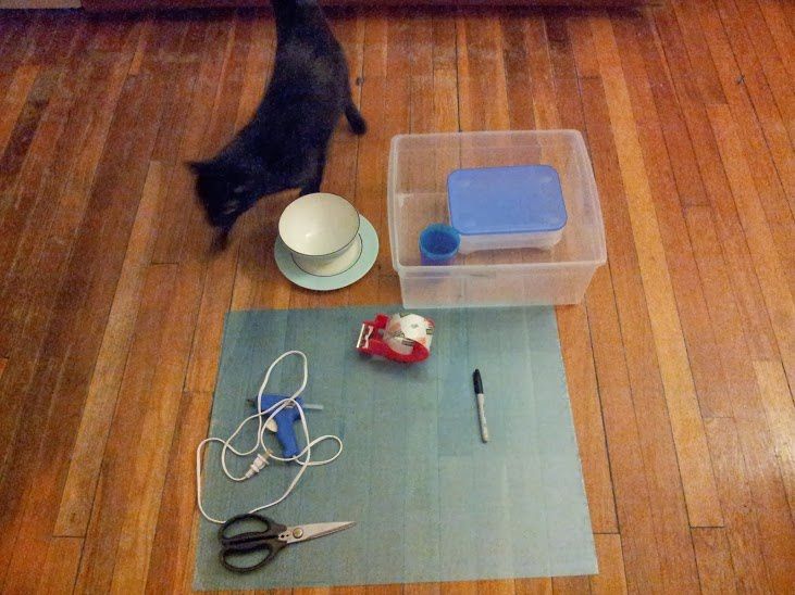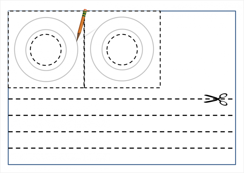 Roll up two cylinders from strips of 5 cm in width and fasten the ends together. Make sure you get the proper circle. Couple the plastic pieces using the adhesive tape. Glue the small cylinder to the support plate using the hot glue gun. The adhesive tape will secure it in the proper place until the glue hardens. Then, remove the strip and completely seal all seams.