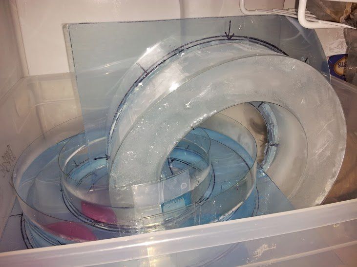 When the second circle gets frozen, remove the molds. To do that, you have to slash the support plate in the mold№1. To re-use it, you may remove the glue remainders and use it again.