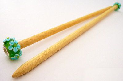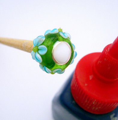 The bead must be put on very firmly in order not to let them fall while waving movements accompanying the process of knitting. Stick it down for a better durability.
