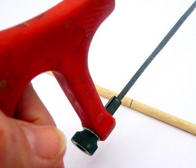 1. The knitting needles made in this master class are of 22 cm long. Measure the necessary length on the stick (s), draw out with the pencil and cut with the saw. You should get two sticks equal in their length.
