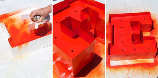 After we collect our letters completely, they can be painted in the desired color with the help of sprayed paint. For painting works you’d better go outside.