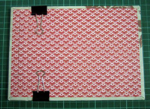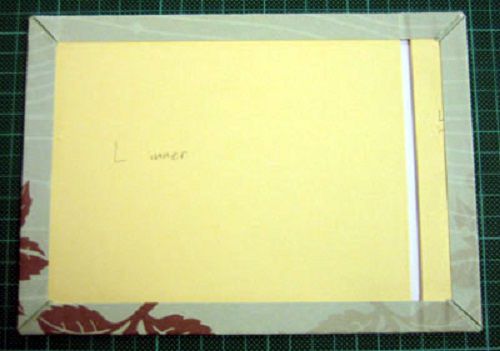 Step 7. Cut out two pieces of colored paper for the inside of the cover. The pieces should be 1,5 cm narrower and shorter. Then glue the colored paper to the cover’s inside.