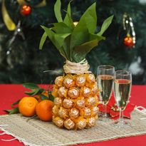 Thus, you can bring two pineapples to a celebration: one pineapple from a bottle of champagne and chocolates for adults and the second one– only of chocolates – for children. Handmade workpieces can be not only beautiful, but also tasty.