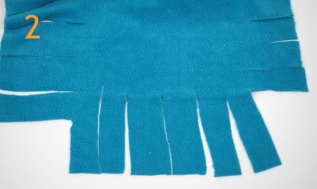 On each side of the cross we do longitudinal cuts, not reaching 2-2, 2 cm till the ball contours. We will make legs of our octopus of the prepared “noodles” – with your own the hands, of course. From each side we do 6 cuts.
