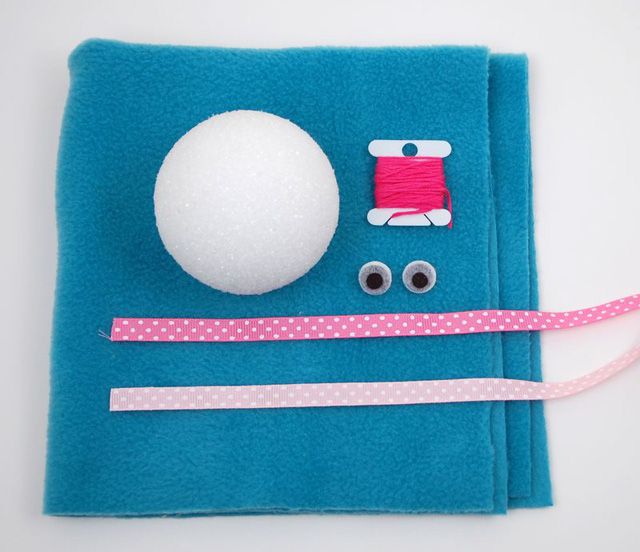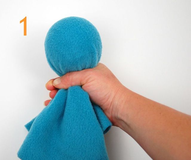 We form “body” of octopus. We place a ball in the center of a piece of blue fabric and wind it round densely by threads. Then we remove threads and pull out the ball, we straighten the fabric. The trace from the thread will help us to define contours of location of the ball (it is necessary not to overdo with cuts).