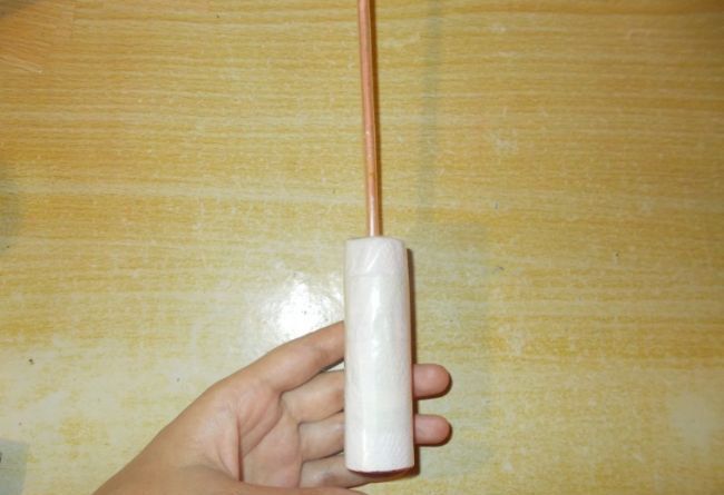 Step 3. Prepare ten newspaper tubes of the same size. Glue eight of them to the top of the handle creating a kind of cap and wrap it with the cotton thread.