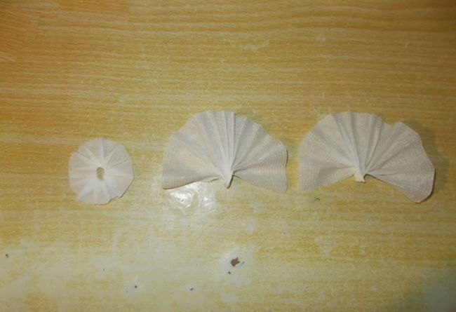 Step 5. Let’s manufacture the umbrella. Cut out one detail from the A4 sheet, then stick it to several layers of glued napkins or crepe paper and cut out.