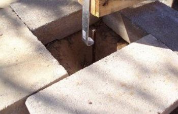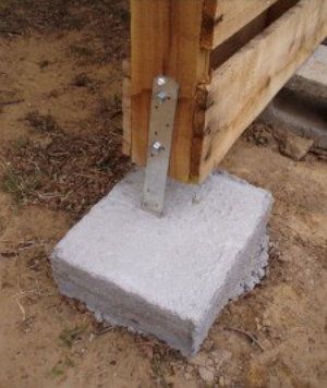 Since the construction of a shed is quite a simple one, there is no need in thinking too much about the base of it. This is how it is made here: we dig out holes and insert reinforcement in them. We lay down the blocks so that there is a rectangular cross section.