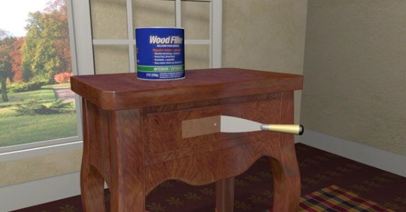 3. Patch all the holes and chipped sections with wood filler. Apply wood filler only to damaged sections, avoiding undamaged ones, though you may result having overlapping parts that you can sand later. Use a scraper to remove excess of the wood filler and let the piece dry.