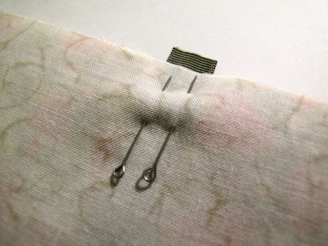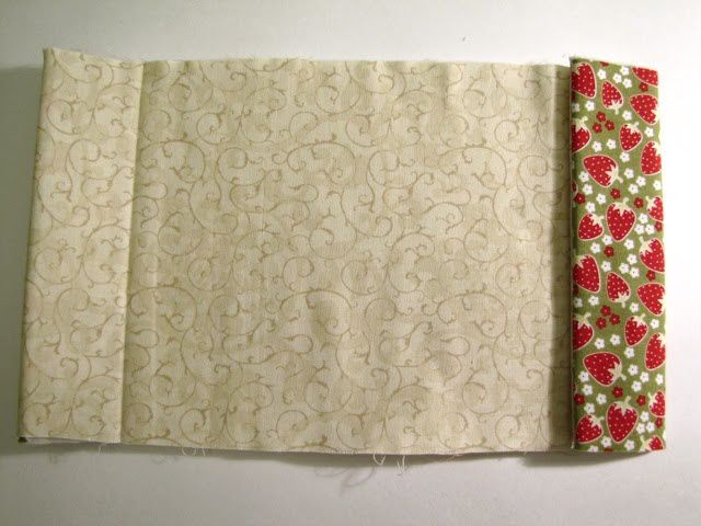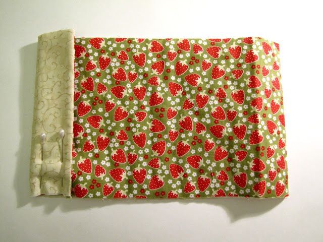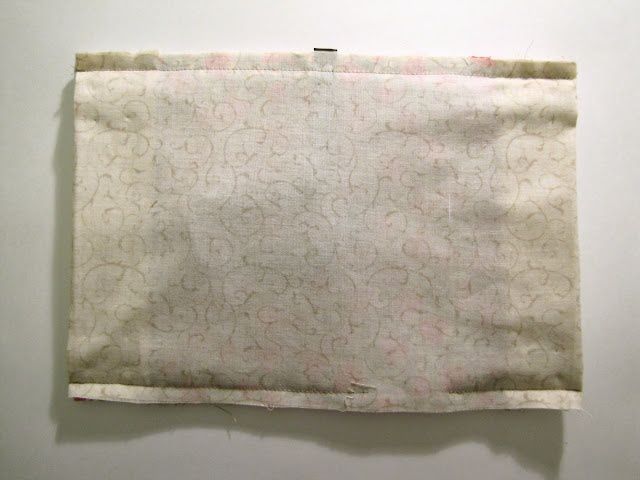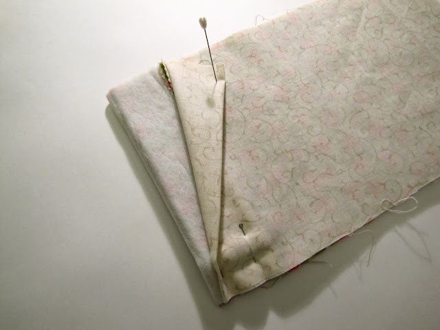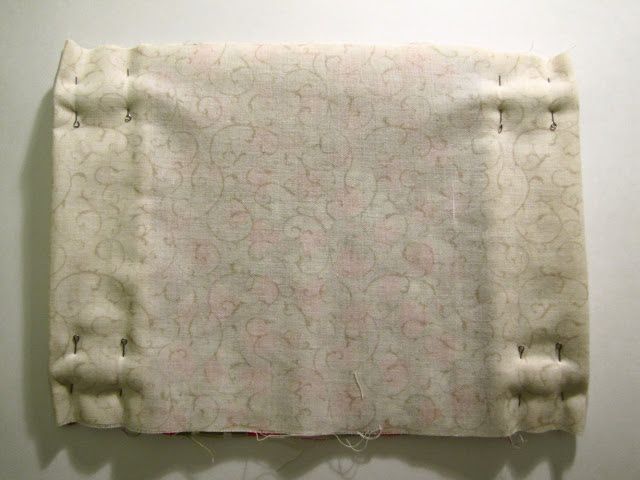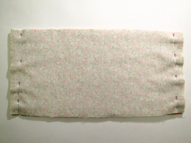 We fold the rectangles inside with their face sides to each other and fasten the sides with pins: