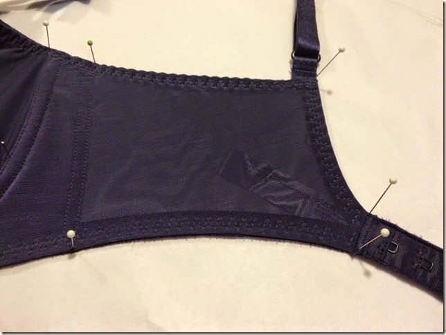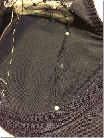 First, you should decide what kind of bra you want to make. If you have the templates that you’re sure about, you can do the cutting and sewing right away. In case you have none, try to make the templates based on your favorite bra. As you can see, there’s no need in ripping your bra. Just lay out the piece as shown in the picture below, pin it in several spots and fix it along the contour.