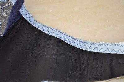 The next stage of the sewing is about attaching the cups to the bottom part. Do this very carefully, so that the cups would look nice. After it is done, sew a braid for the wires.