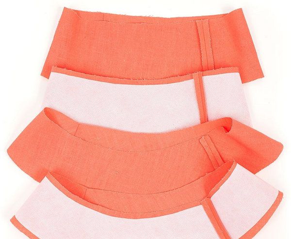 Put the two brim details with the linen face to face to each other and sew the short side seam. You will get a ring. Then sew the brim details without linen in the same way.