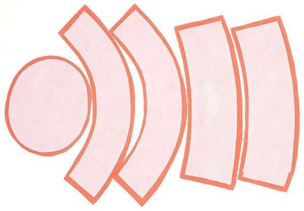 Transfer the details to paper scaling if necessary: the sum of the lengths of the outer sides of the crown should be 56–57 cm. Cut the paper details and put them to the cloth and the gasket.