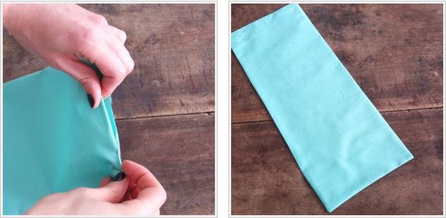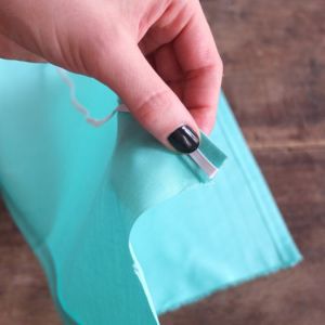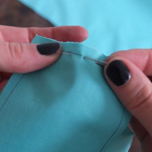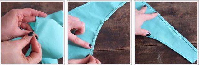 Tuck the hems twice, pin them up and stitch with threads of the same color as fabric by means of the sewing machine.